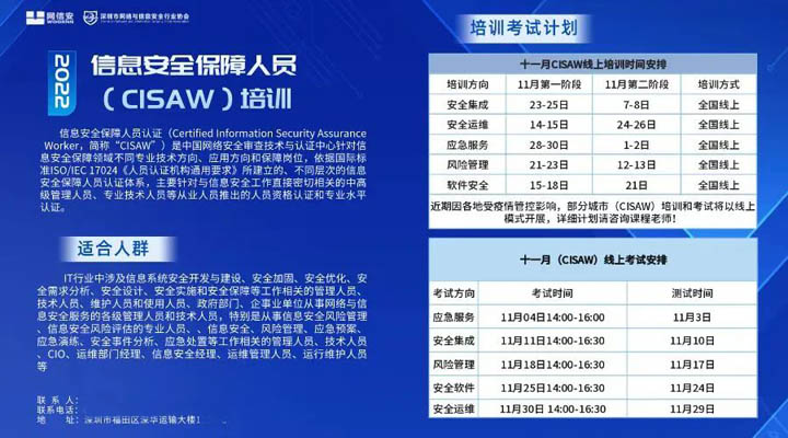 CCRC(CISAW培训 |信息安全保障人员)