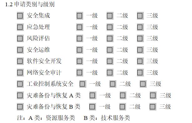 a) 从事信息安全服务(与申报类别一致)3年以上,或取得信息安全服务(与申报类别一致)三级资质1年以上,可提出相同类别的二级申请。