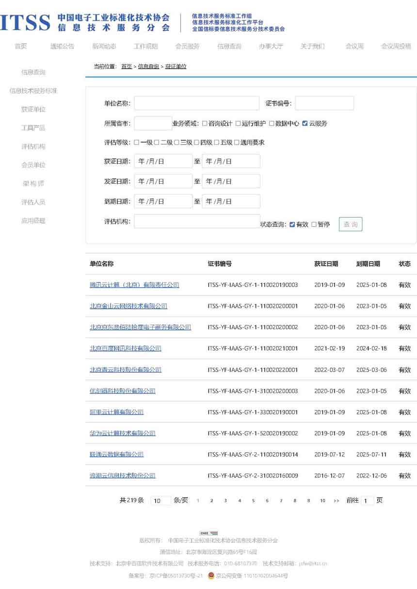查询网站ITSS认证资咨询(云计算服务能力成熟度模型评估)